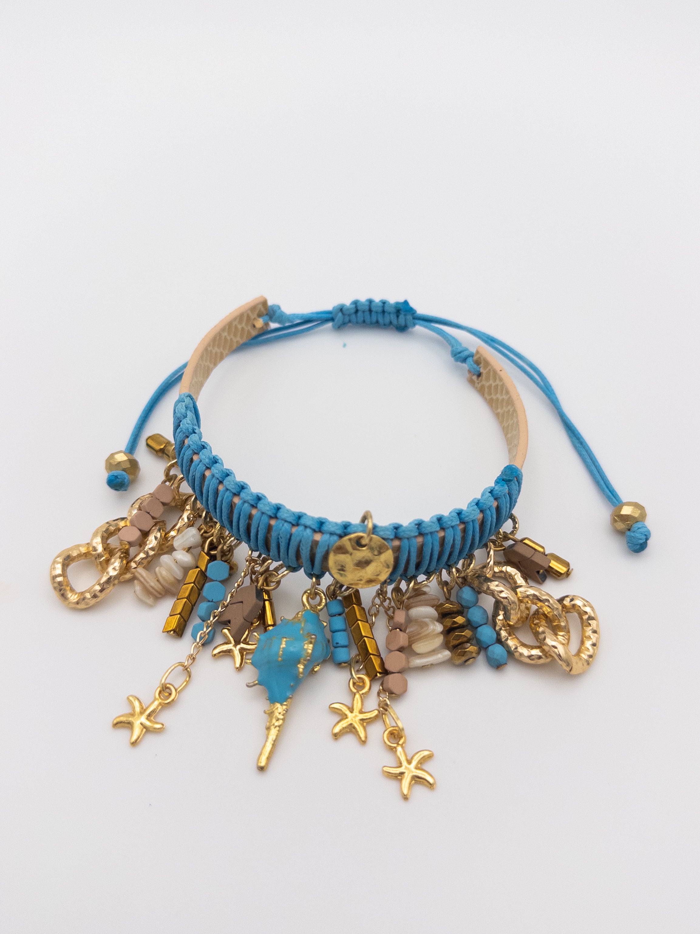 - Gold-tone charms, including starfish, textured chains, and a unique seashell pendant