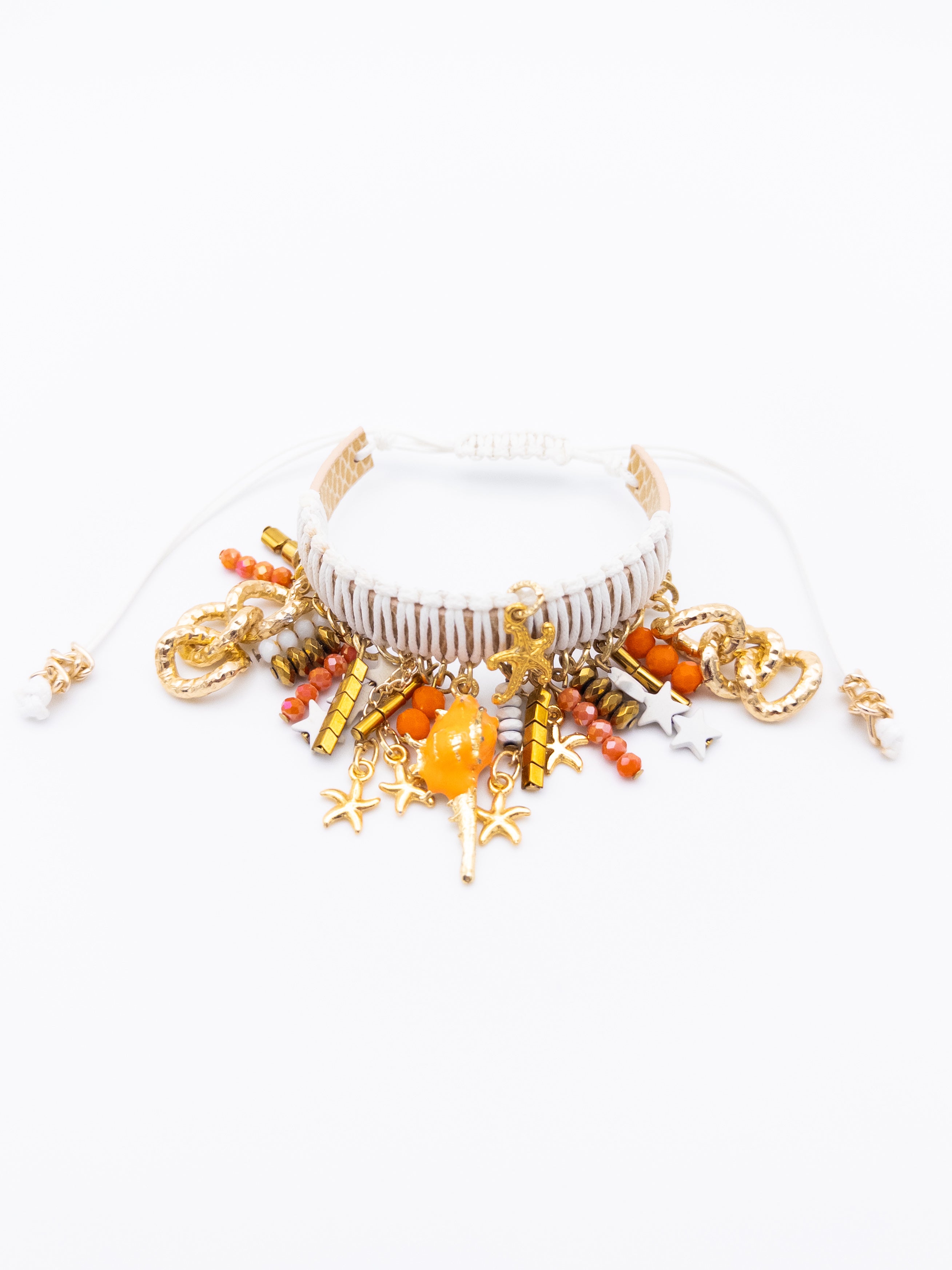 - Gold-tone charms including an anchor, starfish, and geometric elements