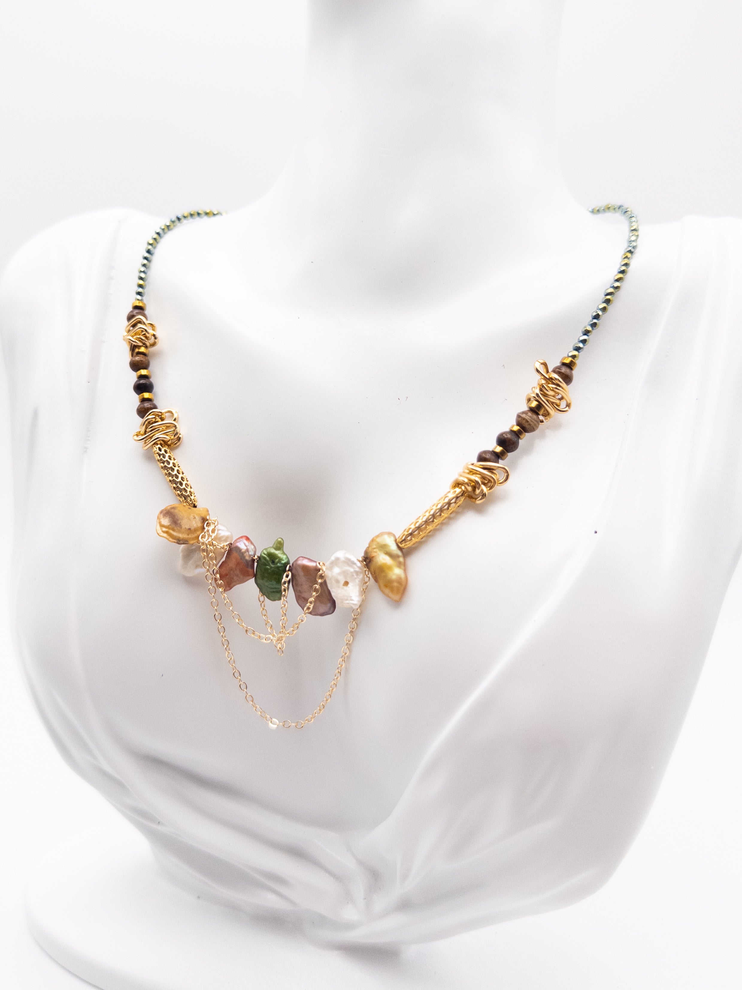 Designed with a hematite stone cord, it features genuine pearls, metal starfish, and seahorse charms. Turquoise, hematite, and volcanic stones add a touch of balance, protection, and stress relief.