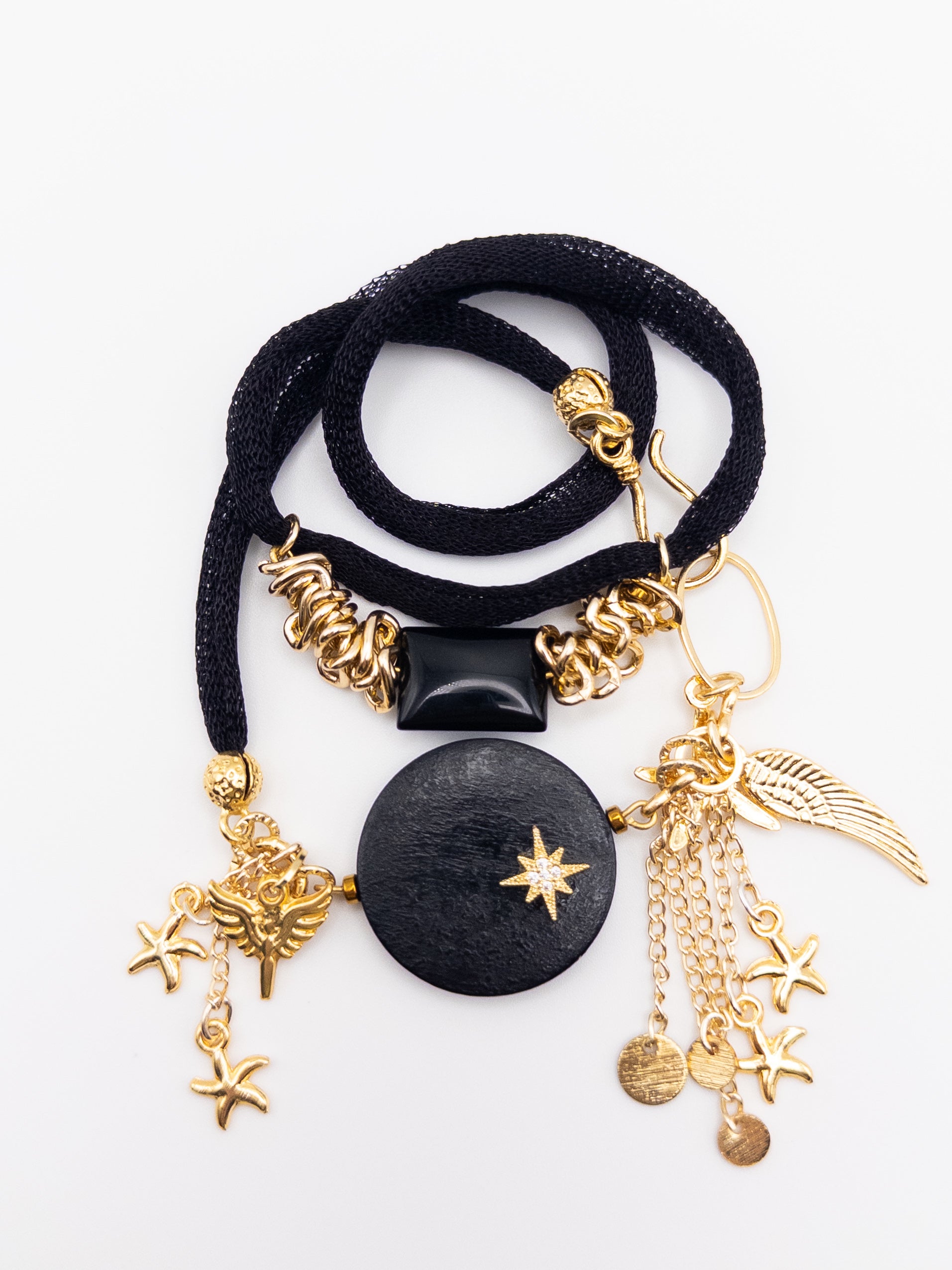 This multi-purpose design can be worn as a three-wrap bracelet or a necklace. The cord is crafted from durable titanium wire, ensuring both flexibility and strength.